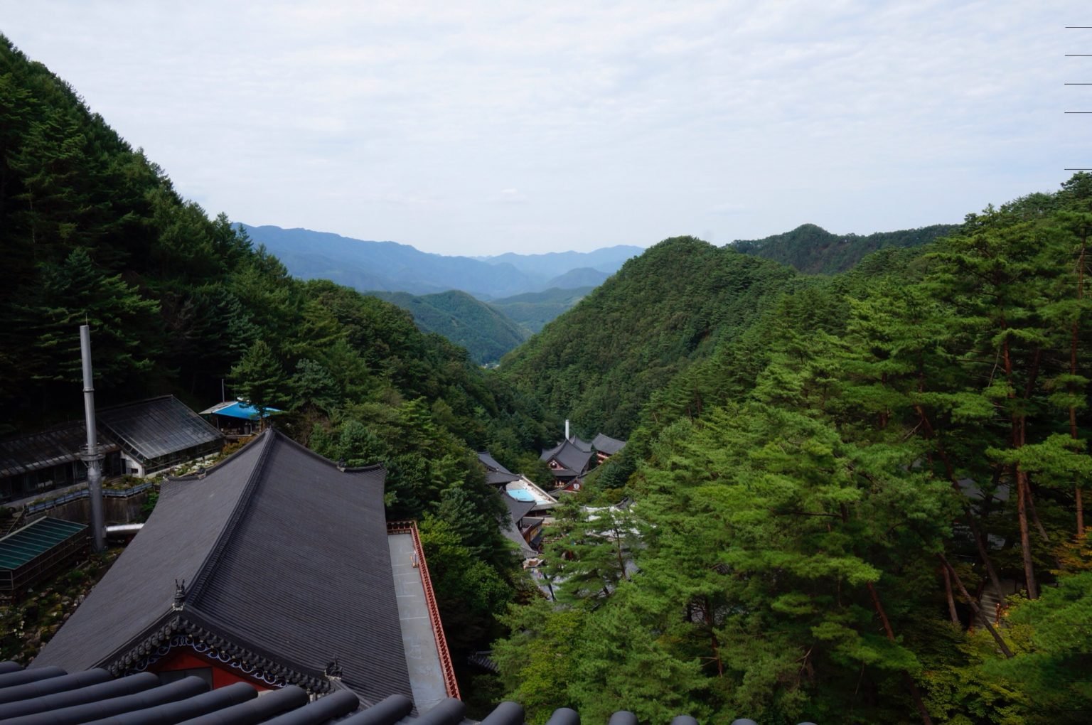 Le temple de Guin-sa est très différent de tout ce que j’ai visité en Corée ou comme temple bouddhiste en général. Les bâtiments sont immenses, sur plusieurs étages et se répartissent en montant le long d’une vallée étroite entre 2 montagnes. Du coup, ben ça monte beaucoup, tout le temps avec des escaliers et des passerelles partout. Les salles de prière sont en étage, avec d’autres salles pour d’autres activités, des ascenseurs…