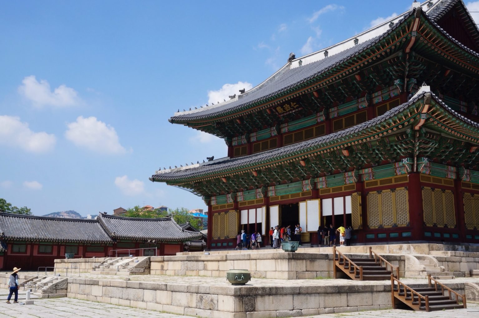 Le palais est magnifique, constitué de différents ensemble de bâtiments construits au fil des années : une partie pour la salle du trône et les réceptions officielles, le logement du roi et de la reine, un ensemble construit pour une concubine, etc. Il est apparement atypique car les bâtiments de Changdeokung se confondent avec la topographie du site au lieu de s’imposer sur la nature.