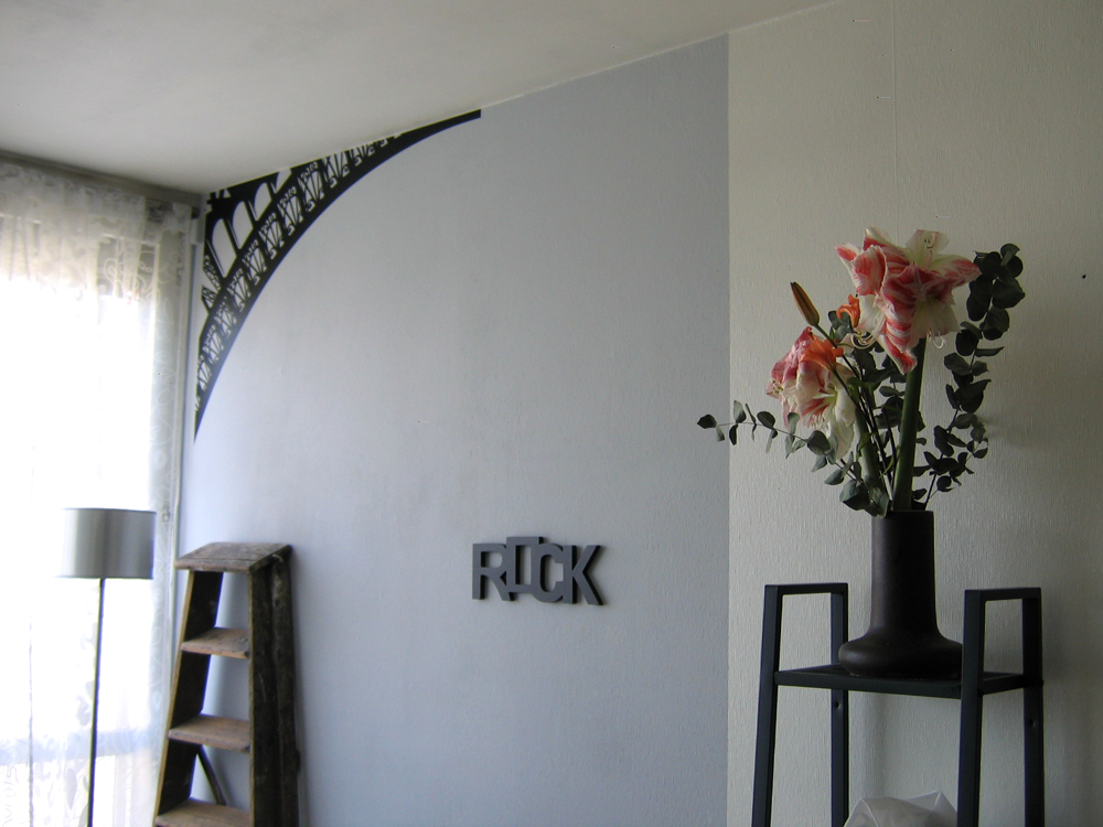 Là ça y est, j’ai plongé avec un sticker mural noir d’un morceau de la Tour Eiffel en silhouette (www.paristic.fr) :[image_frame style= »framed » align= »center » alt= »stickers eiffel » title= »stickers eiffel » width= »550″]https://somiio.fr/wp-content/uploads/2011/08/salon_eiffel.png[/image_frame]